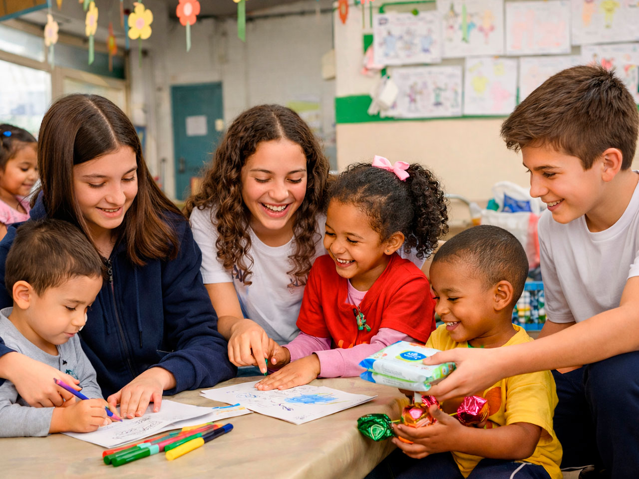 Durante a visita, os estudantes conheceram o espaço, admiraram as atividades expostas e se encantaram com o cotidiano da instituição. Em seguida, propuseram uma dinâmica criativa, na qual o fazer coletivo se transformou em uma linguagem de aproximação. A entrega das doações — bombons e lenços umedecidos — simbolizou não apenas um gesto material, mas um compromisso com o cuidado e a atenção ao outro.